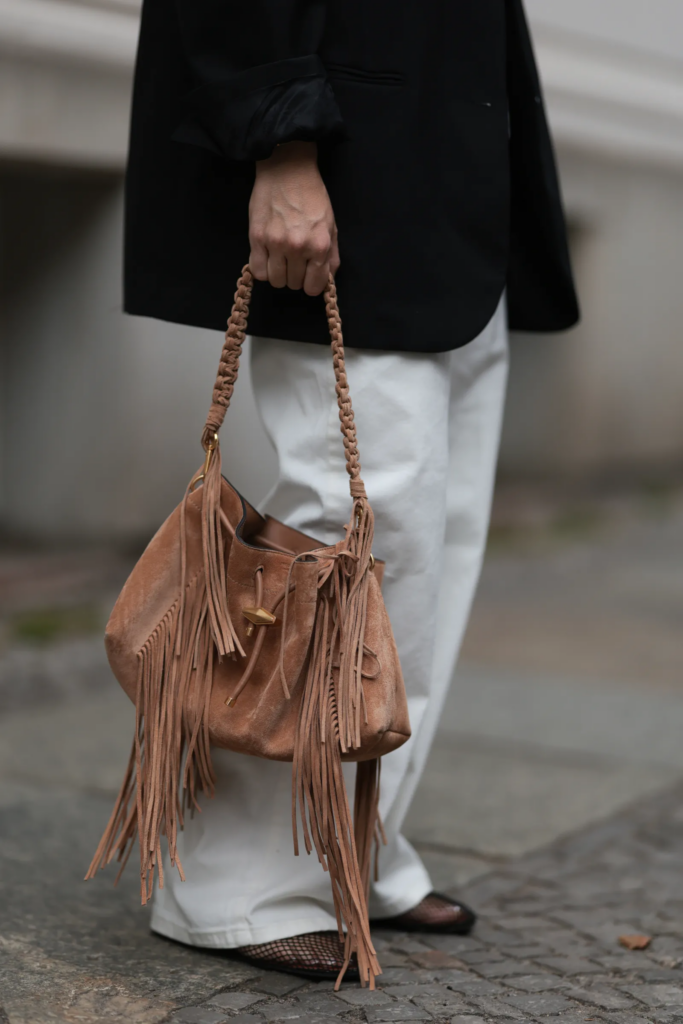 La shopper es la bolsa amplia por excelencia, perfecta para quienes necesitan espacio y estilo en su día a día. Esta temporada la vemos protagonizar tanto en cuero estructurado como en texturas suaves y relajadas, reflejando la demanda por accesorios que combinen funcionalidad con sofisticación. Las tendencias para este 2025 indican que este tipo de bolsas vienen con formas generosas y estructuras suaves, es decir, ligeramente conformadas pero sin rigidez extrema. También se incrementa la preferencia por acabados en gamuza o cuero, lo cual agrega un aire de lujo discreto al conjunto. Este tipo de bolsa funciona bien con prendas de abrigo o looks urbanos: basta llevarla al hombro y dejar que su volumen aporte presencia.